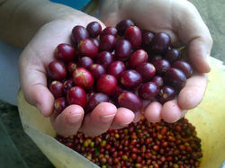 The cherries ripen around eight months after the emergence of the flower, by changing color from green to red. These green berries will turn their color to deep red as they ripen. It takes about 9 months for the green cherries to reach their deepest red color. Only the ripe cherries are harvested and they are picked individually by hand.